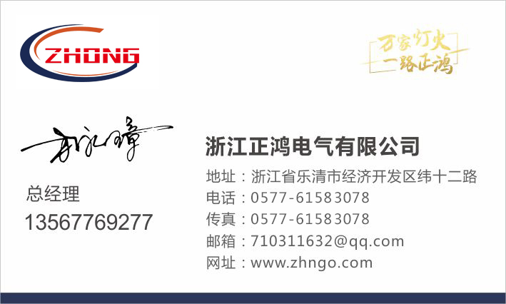 正鴻電氣秉承“業(yè)精于勤、誠善為本、利他而行、共贏有道”的經營理念,從滿足市場需求的實際出發(fā),科學的控制和管理打造一個環(huán)保、健康、安全、和諧的企業(yè)形象。您可以通過以下方式聯(lián)系我們,或直接撥打浙江正鴻電氣有限公司客服專線:0577-61583078