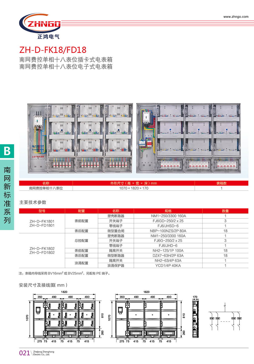 注:表箱內(nèi)導(dǎo)線采用 BV16mm 2 或 BV25mm 2 ,另配有 PE 端子。