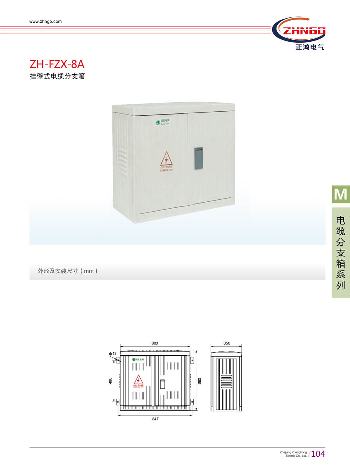 浙江正鴻電氣有限公司生產(chǎn)的 SMC 電纜分支箱主要用于公共電網(wǎng)中,新型多樣的接線方式和元器件布置,能完全實現(xiàn)不鉆孔母線排安裝,母排承載流量不受影響。根據(jù)輸配電網(wǎng)和用戶的需求,提供多種分線方式,箱體類型及安裝方式靈活多變。在國家域網(wǎng)建設(shè)和改造中,是取代架空進線的介紹支持產(chǎn)品。其廣泛用于變配電站所、公礦企業(yè)、街道兩側(cè)、花園住宅小區(qū)、高層建筑、機場等戶外公共場所的三相低壓輸配電系統(tǒng)中,作為用電纜向其他用戶或設(shè)備分配電能的成套定型設(shè)備。