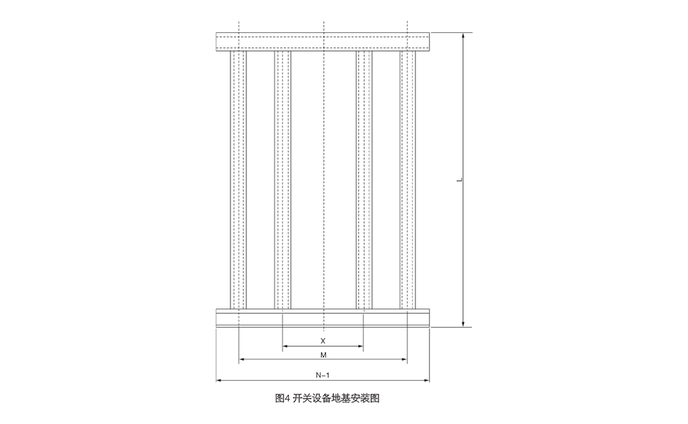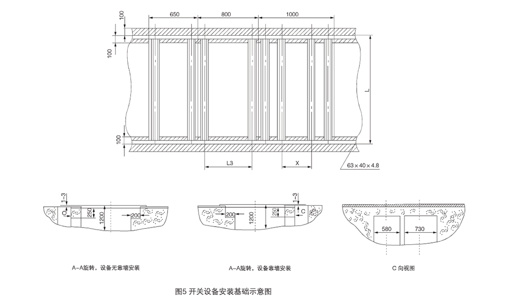 ● 開關(guān)設(shè)備的安裝基礎(chǔ)尺寸與安裝尺寸(見圖 5、圖 6、表 7、表 8),(所用變柜基礎(chǔ)請注意尺寸提示);