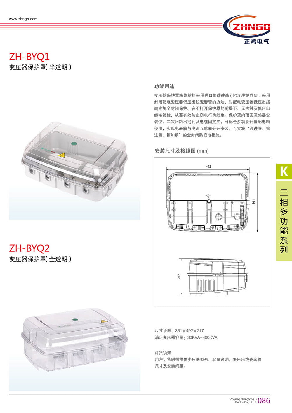 滿足變壓器容量:30KVA-400KVA