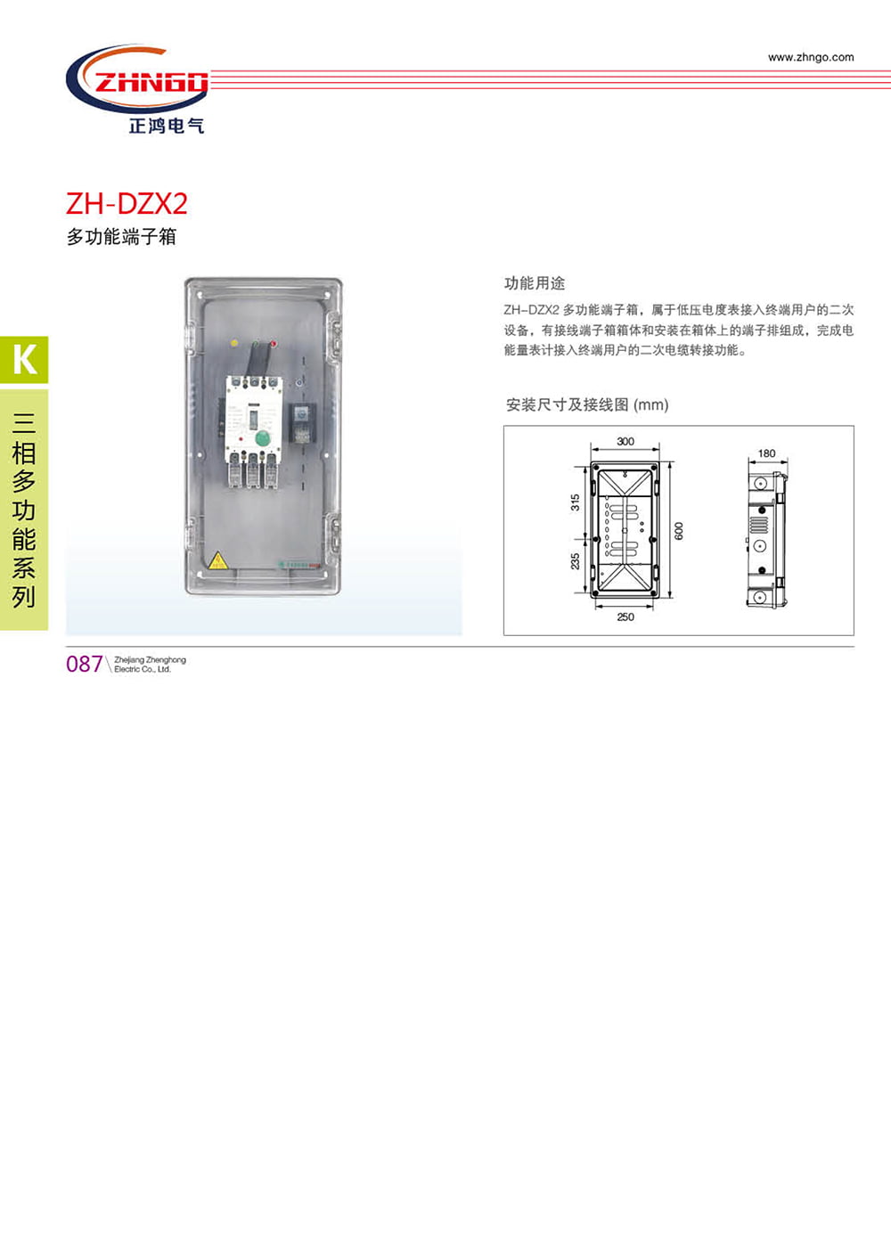 ZH-DZX2 多功能端子箱,屬于低壓電度表接入終端用戶(hù)的二次設(shè)備,有接線(xiàn)端子箱箱體和安裝在箱體上的端子排組成,完成電能量表計(jì)接入終端用戶(hù)的二次電纜轉(zhuǎn)接功能。